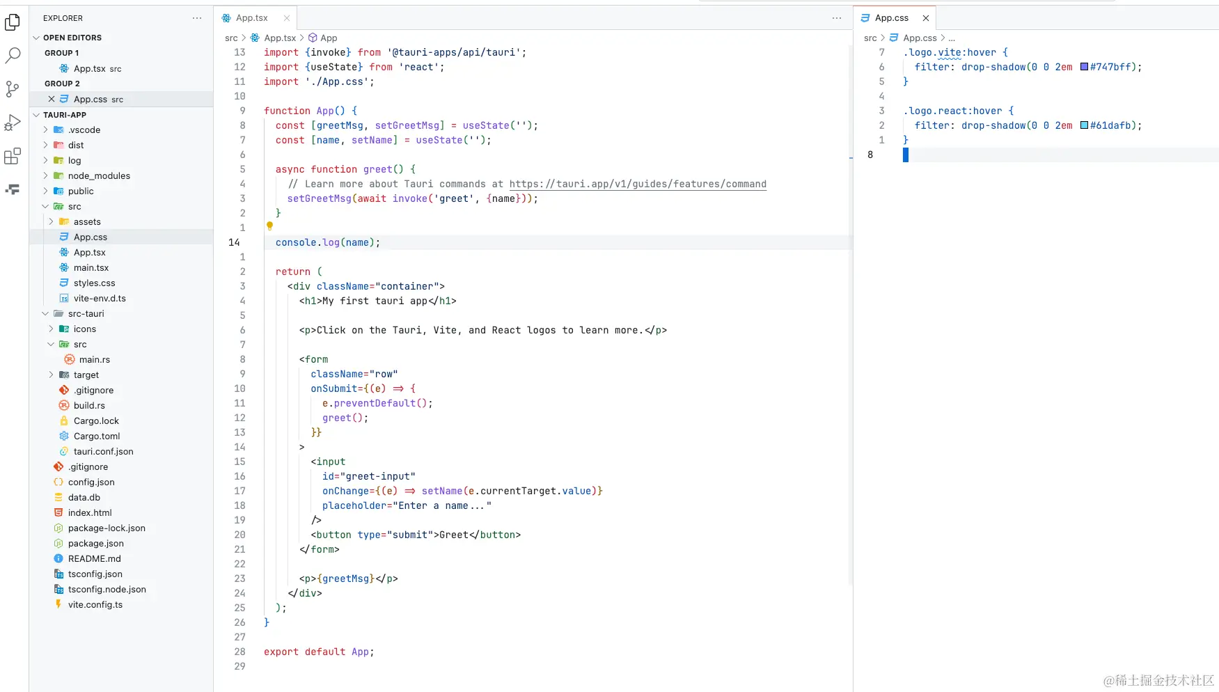 我是这样来操作的,当前光标是在组件的 tsx文件上的,按下 ctrl + e切换到资源管理器,然后按 k选中上一个文件,也就是 css文件,接着按下 ctrl + enter,操作完成后就能在水平窗口打开样式文件了,演示如下