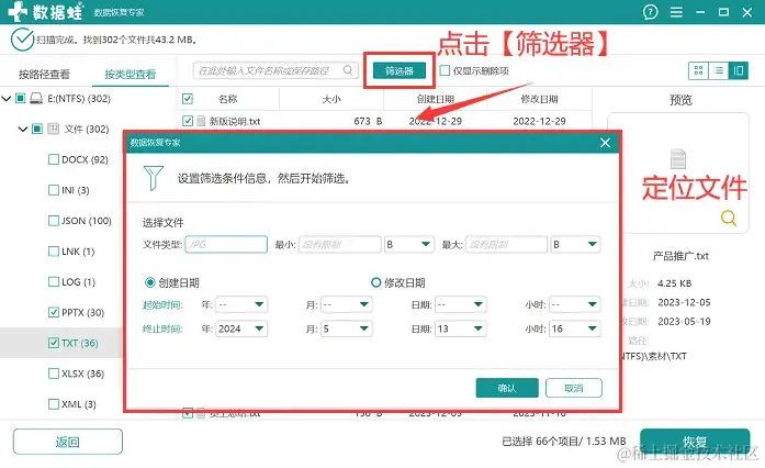 步骤3:软件在进行完快速扫描后会自动进入深度扫描,耐心等待深度扫描完成,如果呈现的文件比较多,建议直接在 【筛选器】中对文件进行定位,也可以根据不同的类型或路径快速定位文件;