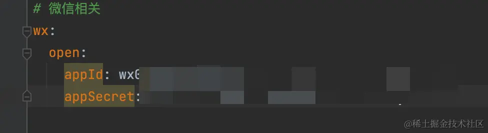 然后在配置文件中添加公众号的 appId 和 appSecret 配置:
