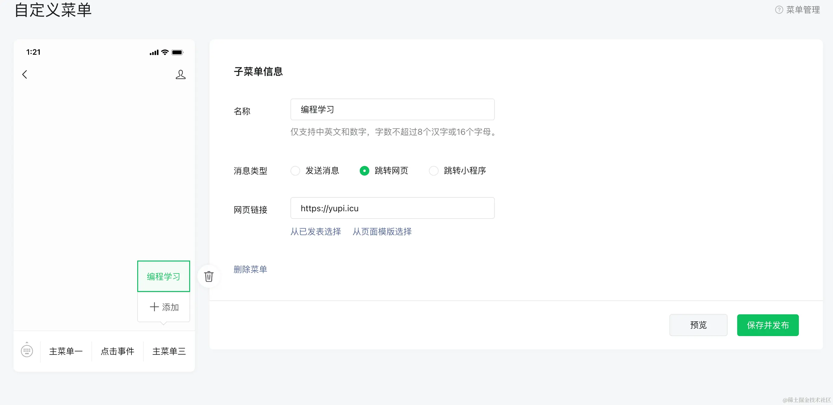 公众号的菜单管理开发实战