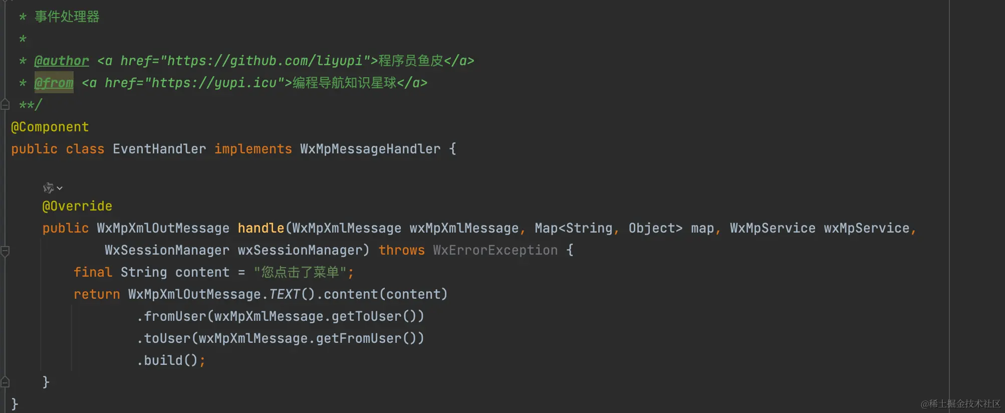 接下来我们用 WxJava 提供的 SDK,通过代码来实现上述同样的功能。