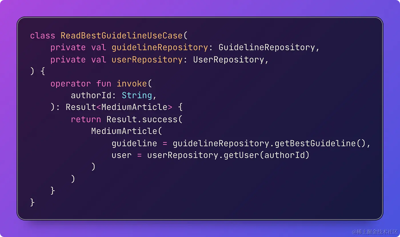 1- 业务逻辑侧重于产品团队向我们描述任务时需要实现的内容. 如果你可以在不同的平台(如 iOS)上使用你的UseCase, 则表明你的UseCase只执行业务逻辑.