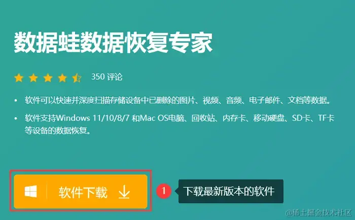 尝试了上述的方法后数据依旧没有找回,那么删除的文件能恢复吗?借助专业的数据恢复软件,会有更大的可能性。比如数据蛙恢复专家,这款软件给用户提供了简单的操作界面和高效的恢复系统,它支持多种数据类型文件的恢复。当我们电脑上的文件丢失后,及时使用该软件,有更大的可能性成功恢复数据。软件简单的操作步骤可参考下文哦。