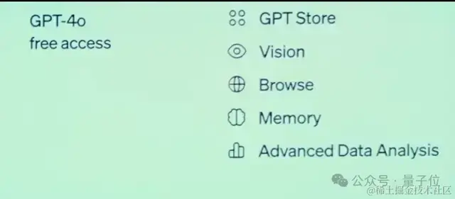 这还是一份给所有人的大礼,GPTo 与 ChatGPT Plus 会员版所有的能力,包括视觉、联网、记忆、执行代码、GPT Store……