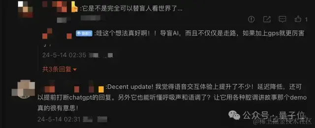 追直播的网友已经在设想可能的应用,可以替代盲人看世界了。以及确实感觉比之前的语音模式体验上强上不少。