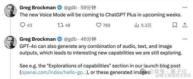 最后视频以 Brockman 唱出的一句 Thank you 结束,在视频外的推文中他还透露新的语音对话功能将在数周内向 Plus 用户开放。