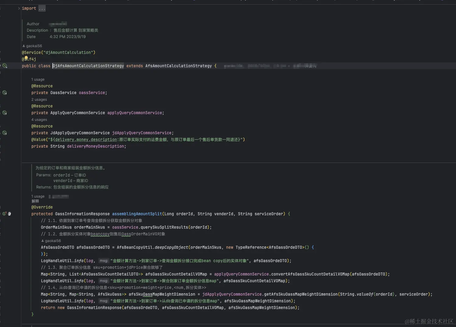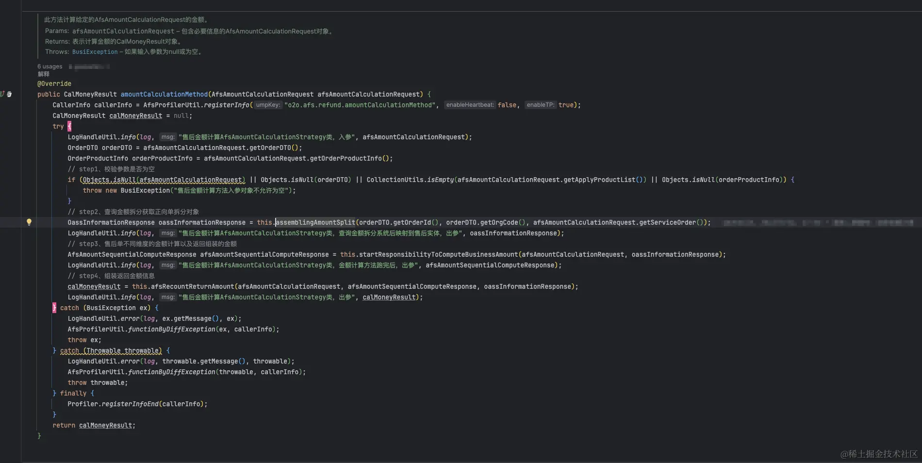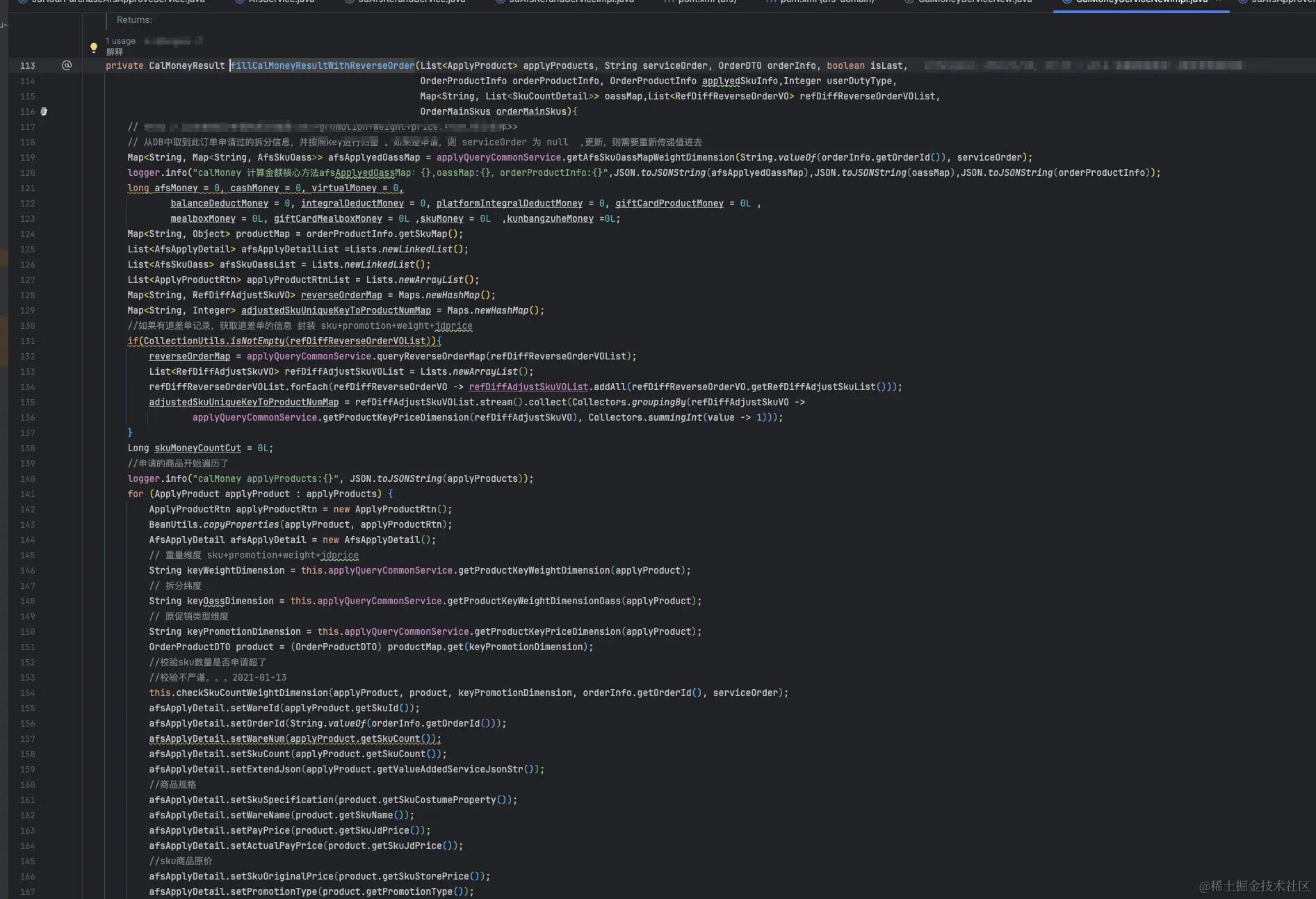 一个大的金额计算class类就有1000多行代码,每个方法中都有几百行代码,以下是京东秒送售后单金额计算部分代码