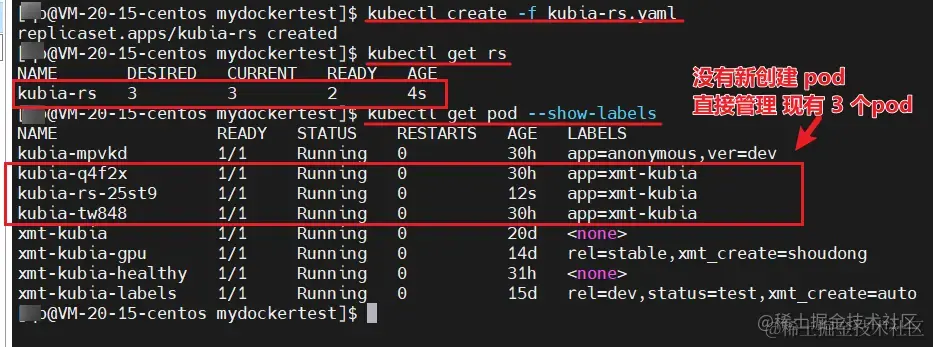 app=xmt-kubia 的 Pod 没有影响, rs 也没有多创建 Pod ,这没问题。
