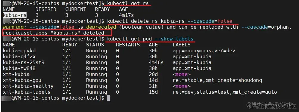 删除 rs 的时候和删除 rc 的做法是一样的,默认的话都是会删除掉 rs 管理的 Pod ,如果我们不需要删除对应的 Pod ,那么我们也可以加入 --cascade=false 或者 –cascade=orphan