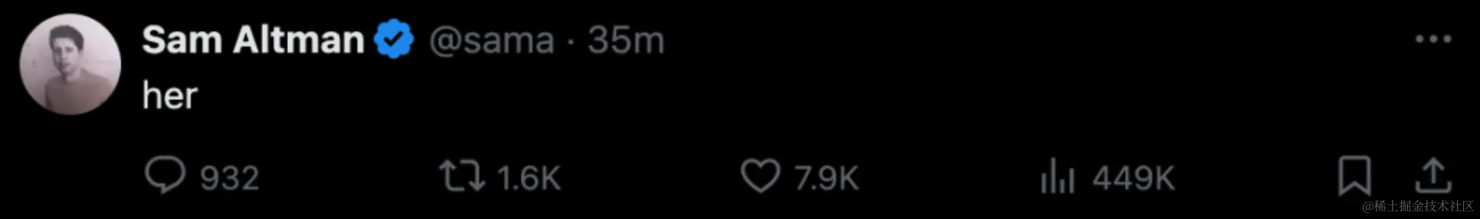 这也是 OpenAI 创始人、CEO 山姆·奥特曼在发布会后,发的帖子内容。