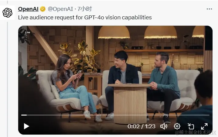 同时, GPT-4o将在免费套餐中提供,并向 Plus 用户提供高达 5 倍的消息限制。我们将在未来几周内在 ChatGPT Plus 中推出带有 GPT-4o 的新版本语音模式。