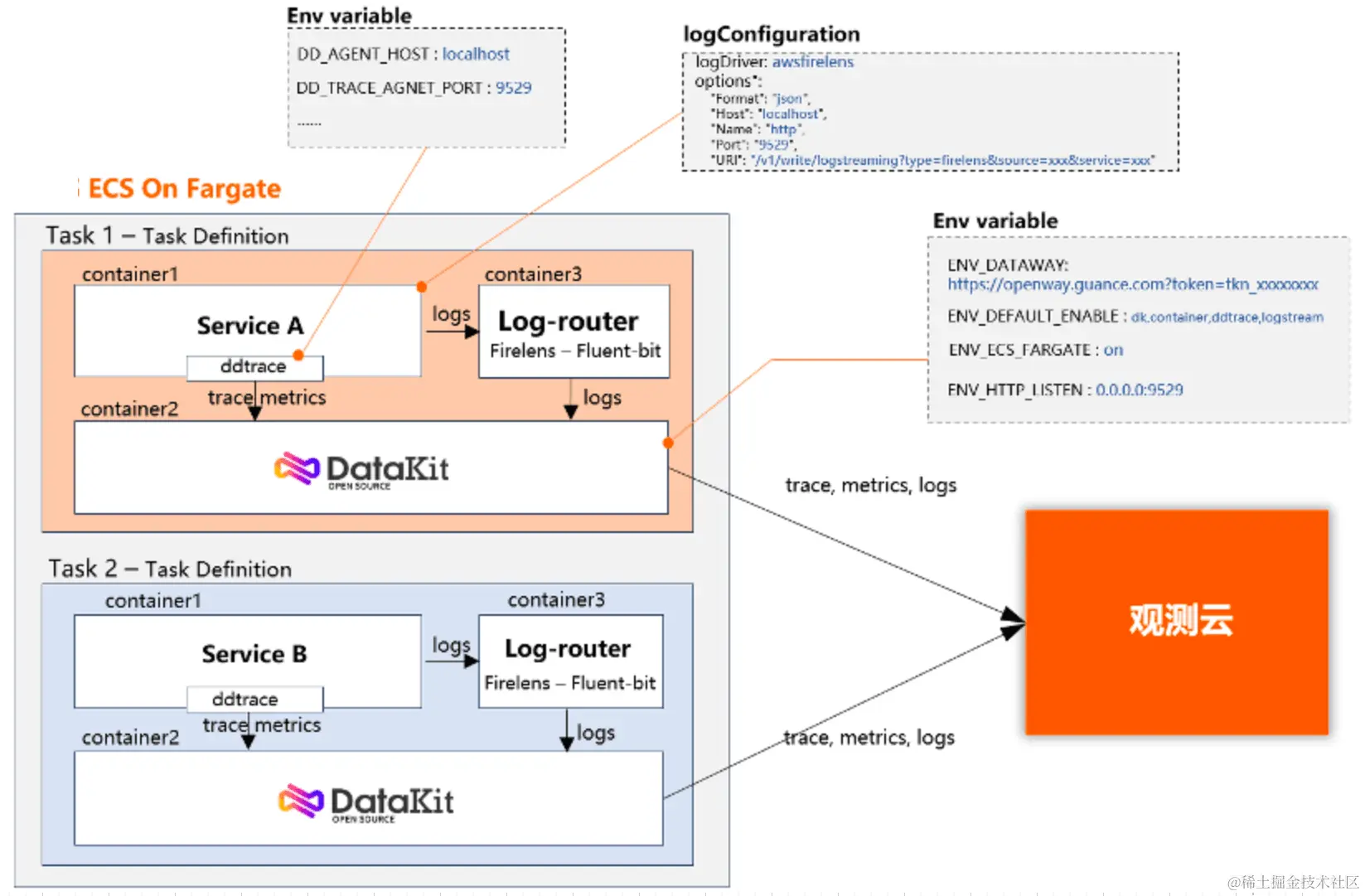 该部分将对如何在 ECS On Fargate 环境中进行观测数据采集的部署配置进行说明。