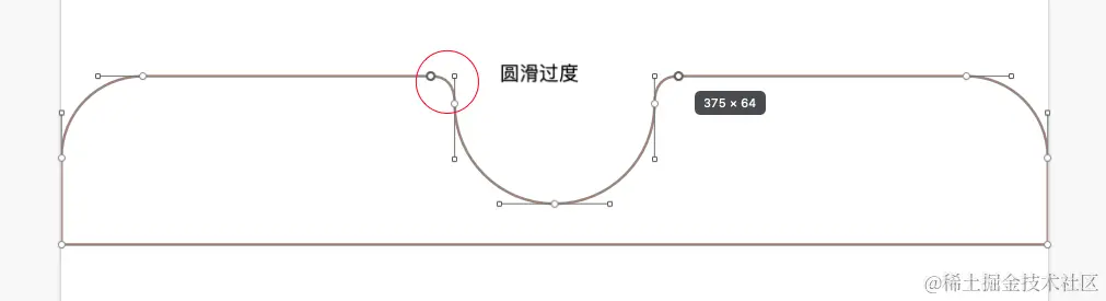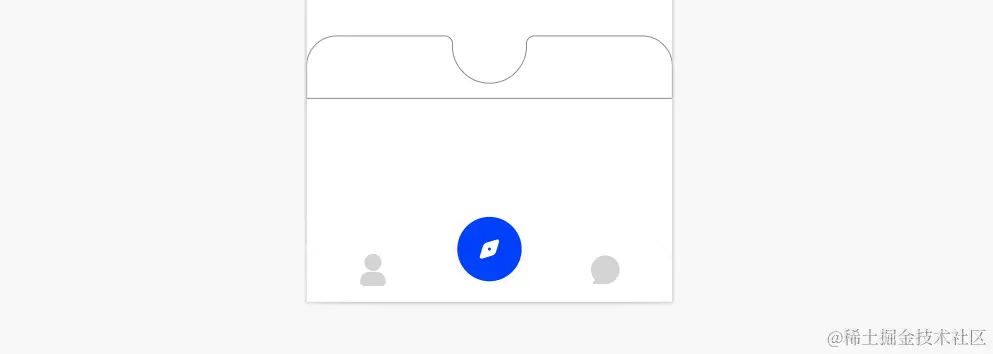 例如上图中的底部导航栏中间有一个圆形凹槽,并且凹槽顶部两角为圆滑过度,使用常规的ClipPath路径剪裁并不好处理