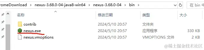 打开终端,切到bin目录并运行 .\nexus.exe /run 指令 启动Nexus