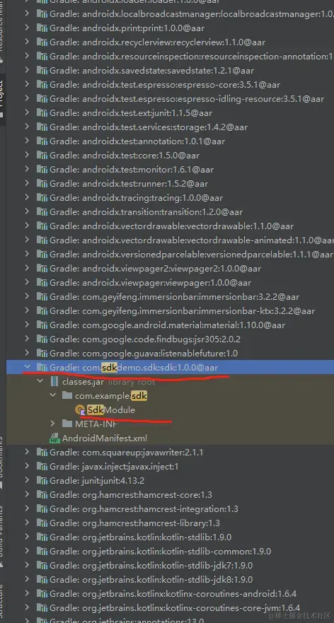 点击sync 等待下载完成, 打开External libraries 可以看到aar包已经引入进来