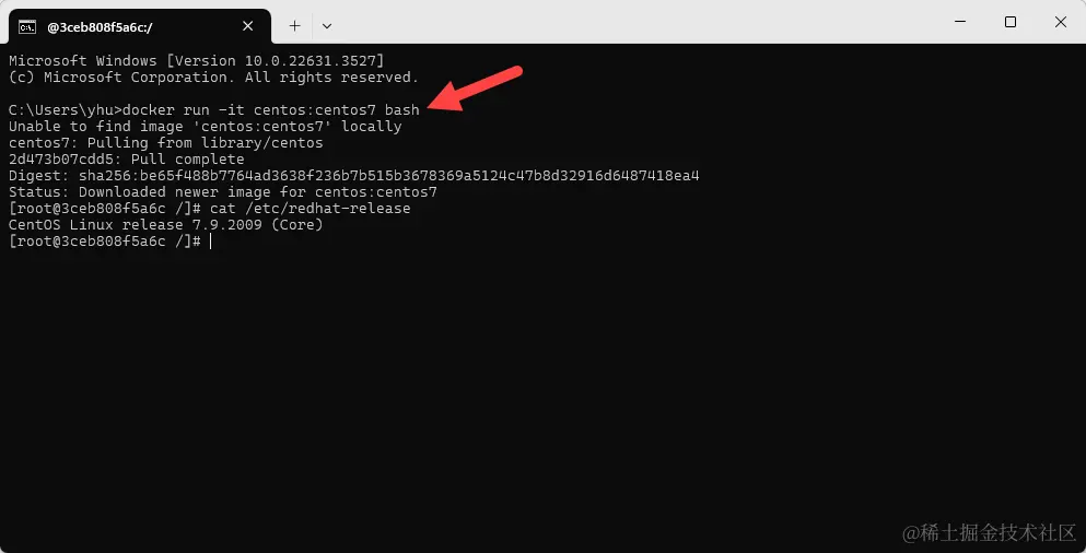 C:\Users\yhu>docker run -it centos:centos7 bash