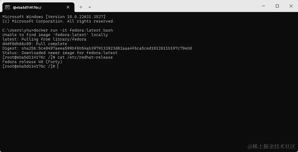 C:\Users\yhu>docker run -it fedora:latest bash
