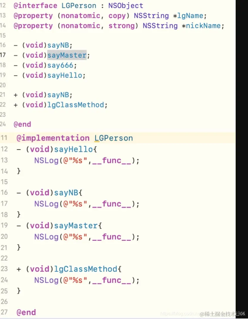 LGPerson类,其中say666实例方法 和sayNB类方法均没有实现 -
