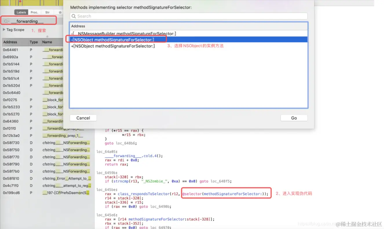 Hopper反汇编CoreFoundation的可执行文件,查看methodSignatureForSelector方法的伪代码 -