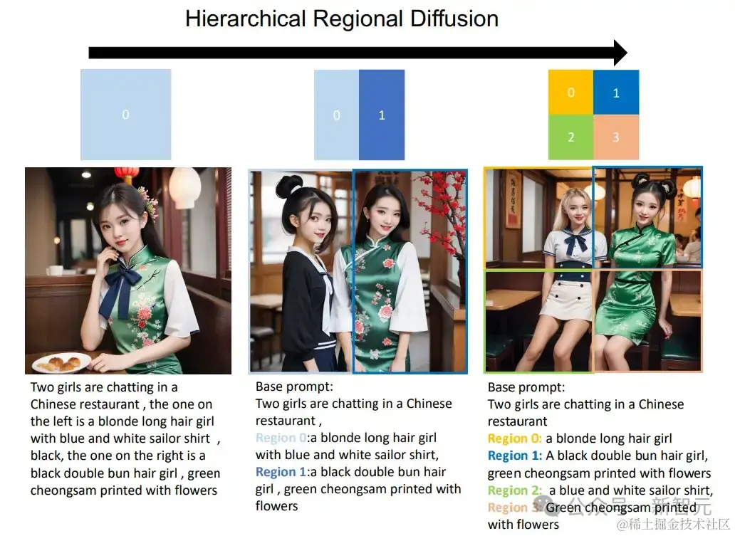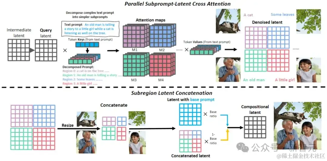 将图像空间划分为互补的子区域,并为每个子区域分配不同的子提示,同时将生成任务分解为多个更简单的子任务。
