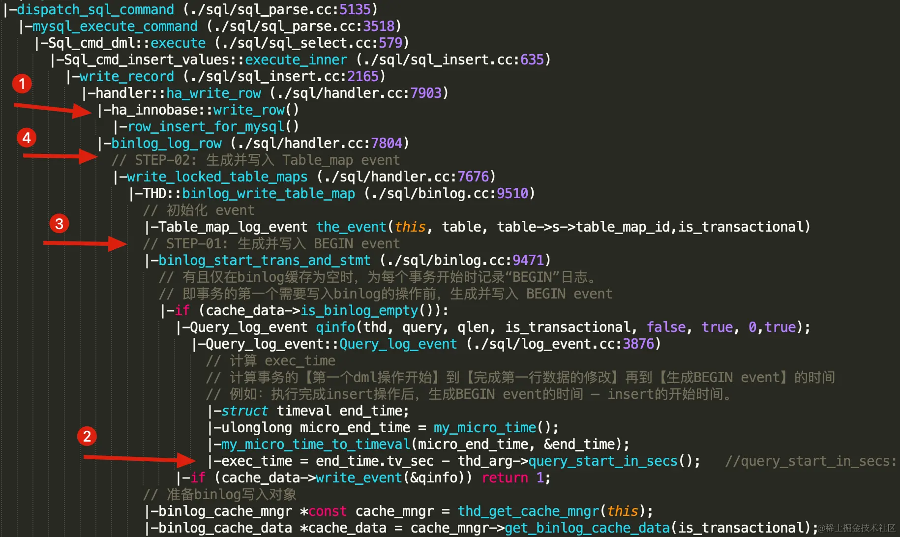 为此,通过测试验证,并结合源码分析 binlog 中常见 Event 时间与 exec_time 的由来,并总结字段之间的关系。