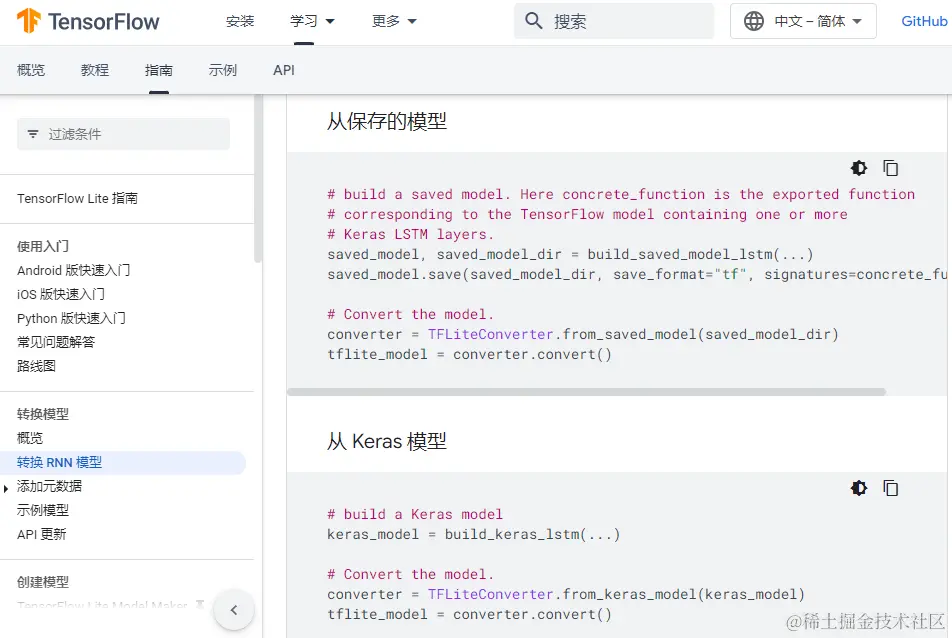 而对于TensorFlow训练完成的模型,可以轻松转换为适合嵌入式设备运行的tflite格式。
