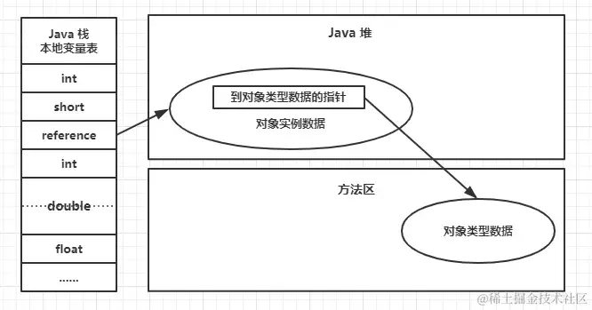 Java程序会通过栈上的reference数据来操作堆上的具体对象。