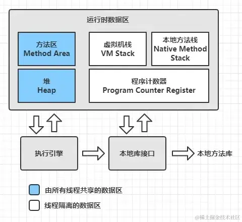 方法区(Method Area)也是各个线程共享的内存区域,它用于存储已被虚拟机加载的类型信息、常量、静态变量、即时编译器编译后的代码缓存等数据。方法区也被称为 “非堆”,目的是与 Java 堆进行区分。