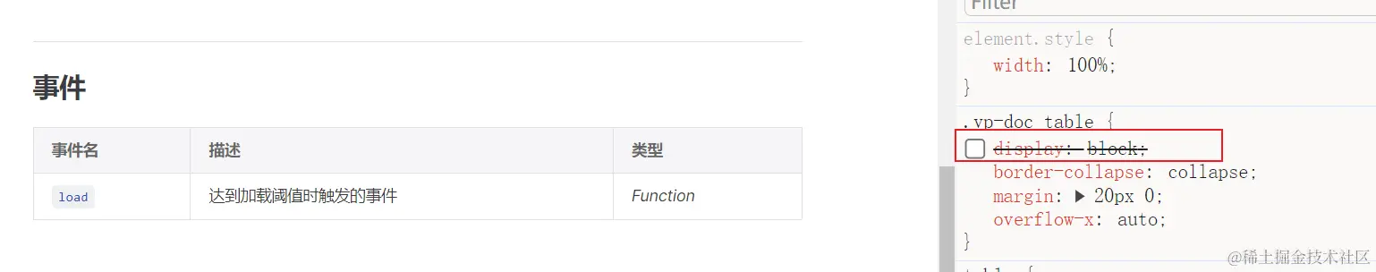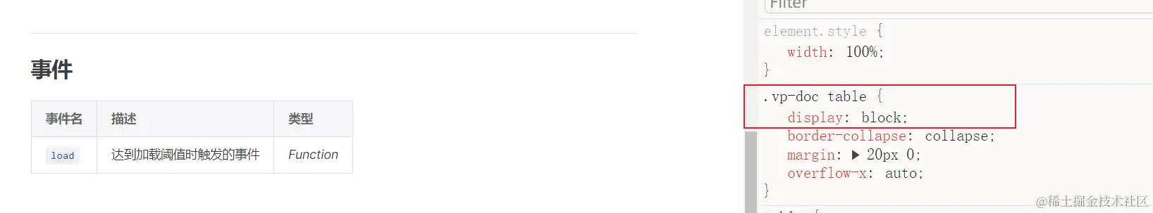 默认主题为了适配移动端 table,确保 table 在超出容器宽度时能够出现横向滚动条,将 table display: block,导致 PC 端 table 宽度不能 100%占满容器: