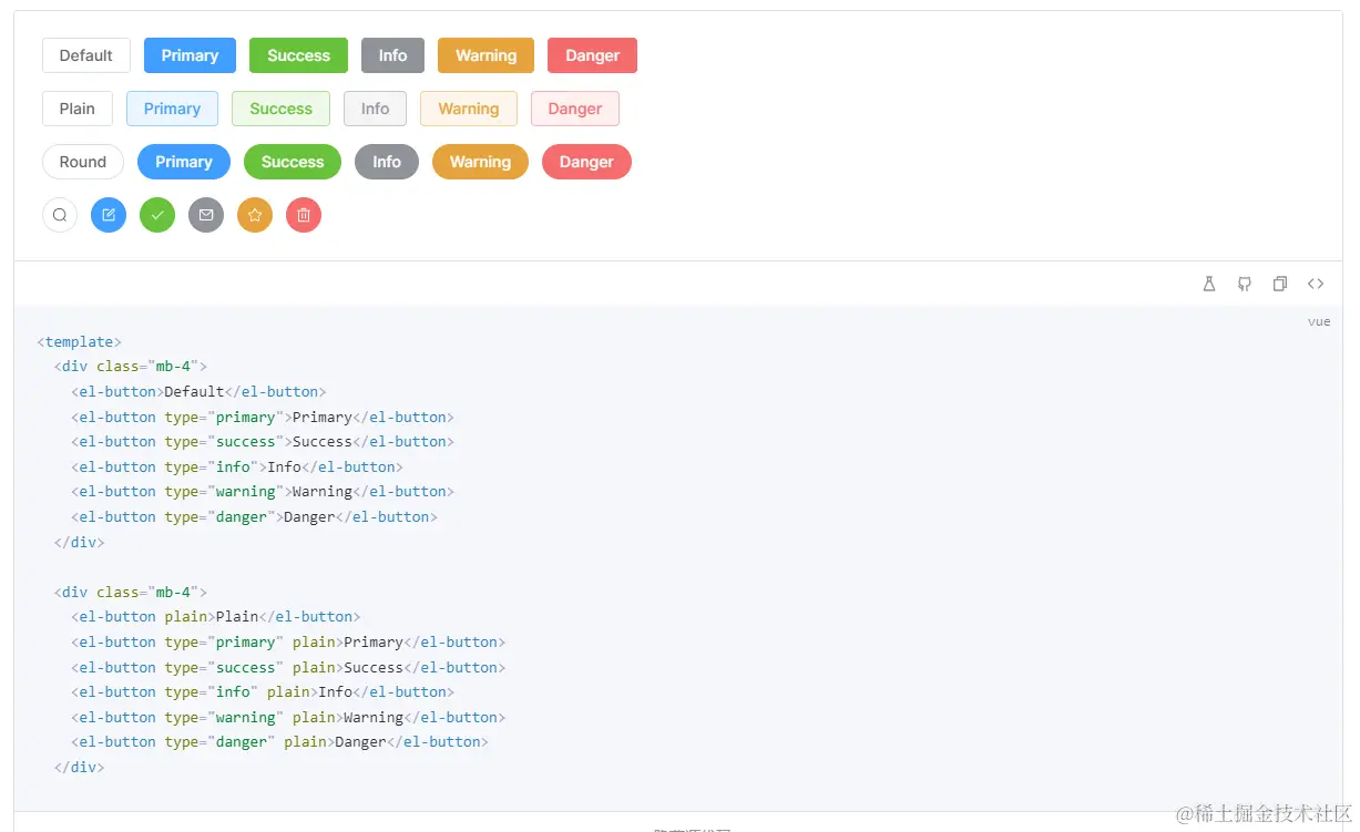 按钮有三种类型:`主按钮` 、`次按钮` 、`线框按钮` 。主按钮在同一个操作区域建议最多出现一次。// desc