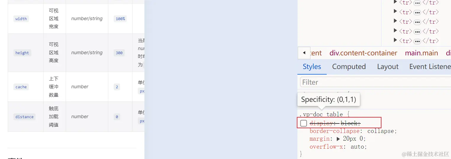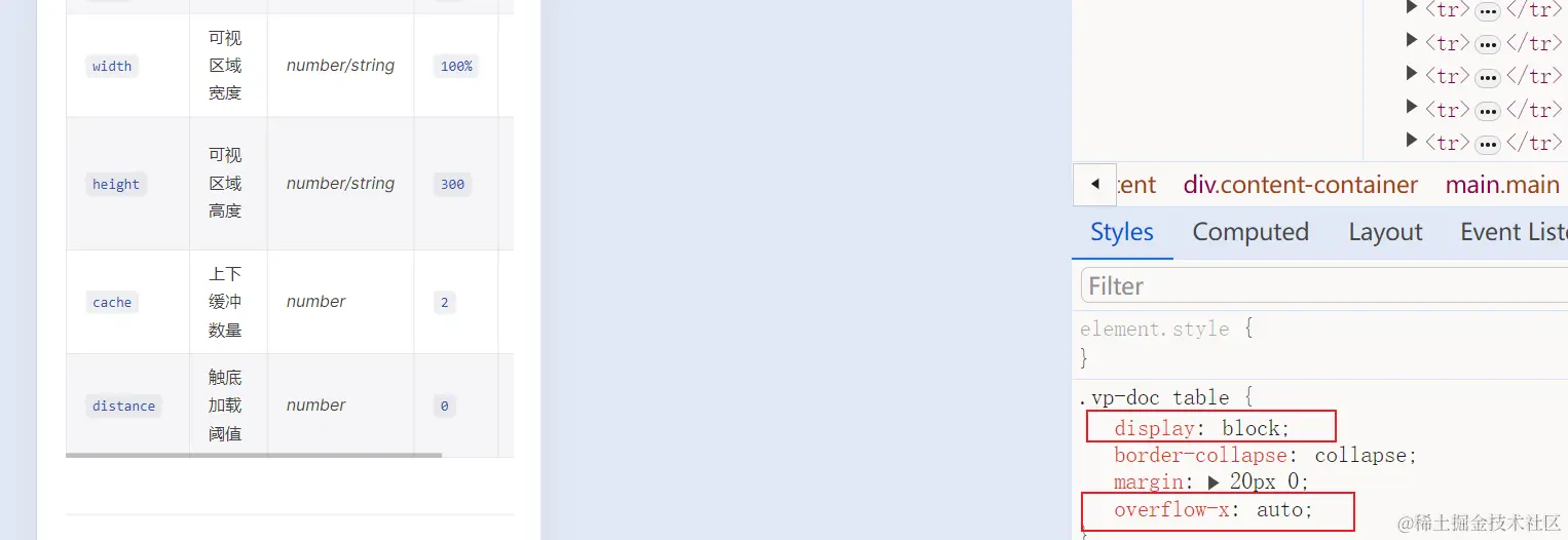当我们去掉 display: block会发现 table 溢出了: