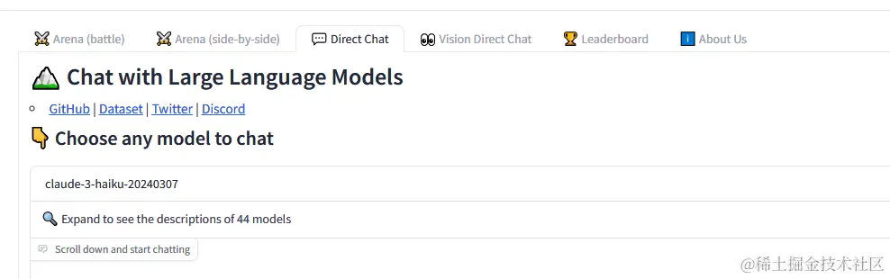 进入后点击Chat,然后选择GPT4o模型就好。需要注意的是,模型竞技场有些时候会因为没有次数额度下架GPT4o模型使用。