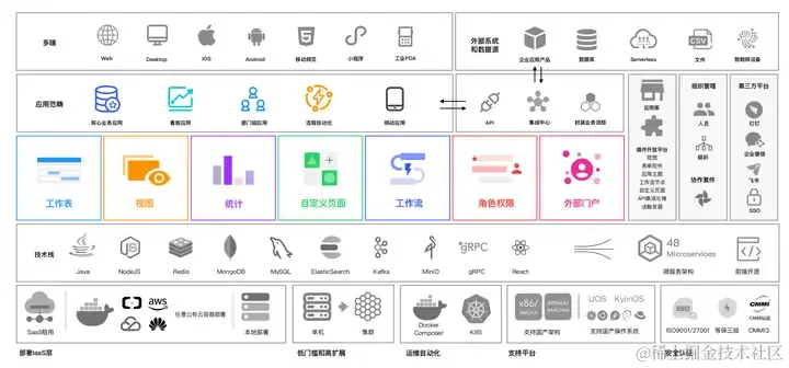 - 集成与扩展性:通过集成中心和完整的API对接能力,轻松与外部系统集成;同时支持多云部署和国际化。