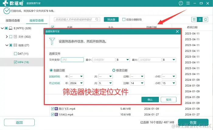 步骤2:选择需要查看的文件类型,在右侧可以查看扫描结果,也可以直接在【筛选器】中对文件进行快速定位;