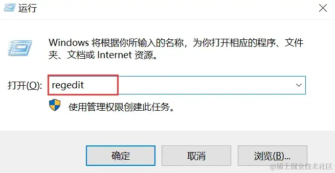 步骤1:按下【Win+R】键,输【regedit】并回车;