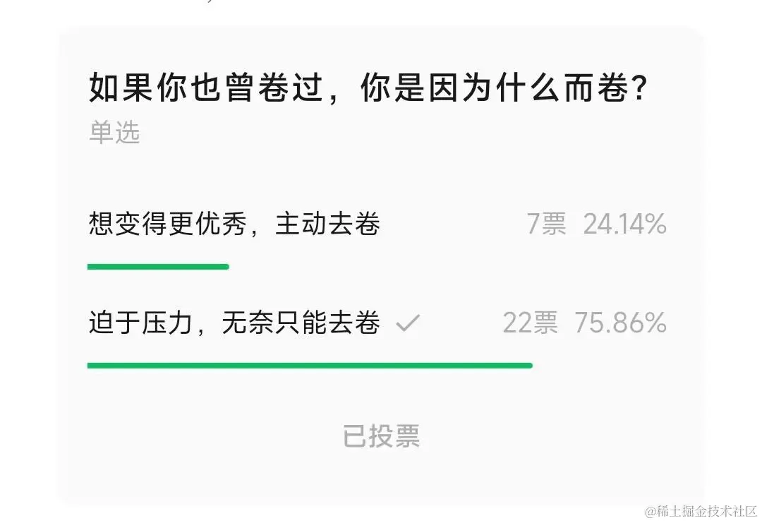 我相信你们也肯定都“卷”过,甚至正在“卷”,那么问题来了,你们到底是因为 对工作充满热情,追求卓越,希望通过努力工作来实现自己的目标、提升个人能力和地位 而卷,还是由于 工作中存在高强度的工作压力、激烈的竞争或者不合理的工作要求,亦或者是因为别人的卷,导致自己的地位受到威胁,迫于无奈 只能跟着卷呢?留下你的答案,在评论区也可以讨论一下。
