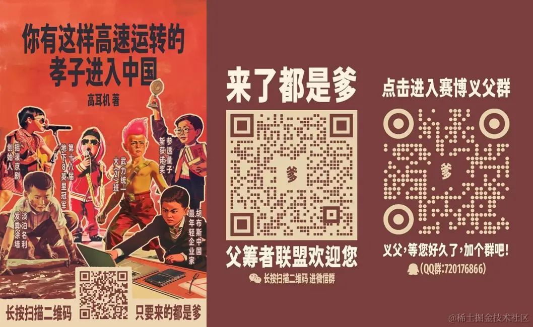海报里的高耳机、胡布斯、发粪涂墙、你有这样高速运转地孝子进入中国,入群二维码里的父筹者联盟,明晃晃满屏的爹… 甚至,开发团队的名字都叫狸谱 😂