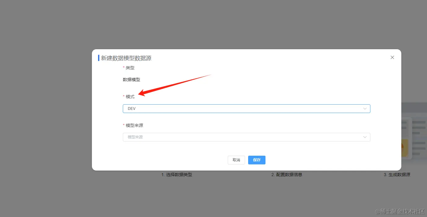 1.数据源数据模型新增模式选择;