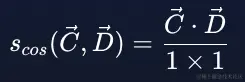 由于现在两个归一化向量的大小都是 1,点积相似度公式(6)就变成了……你猜对了,两个归一化向量的点积:
