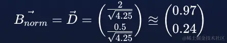 。然后,将向量的每个分量除以其大小,我们得到以下归一化向量: