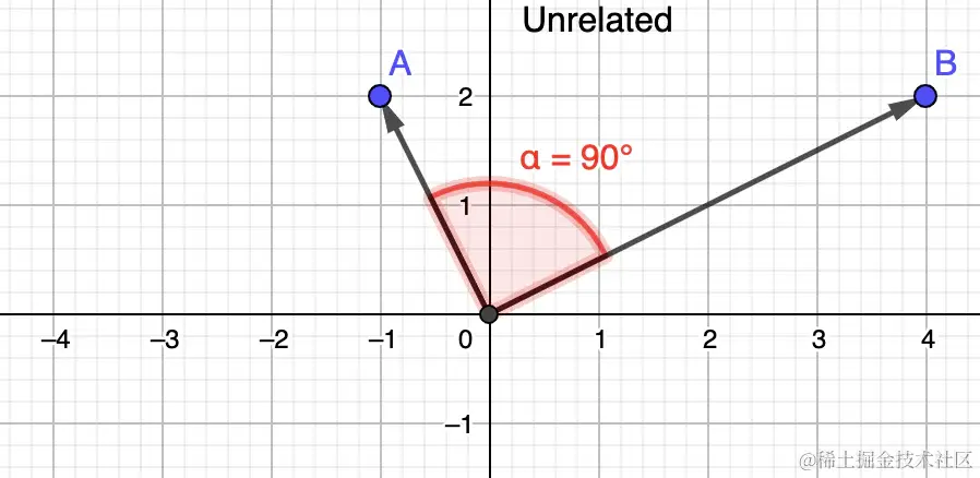 2)不相关,它们的角度的余弦接近 0 (即接近 90°)