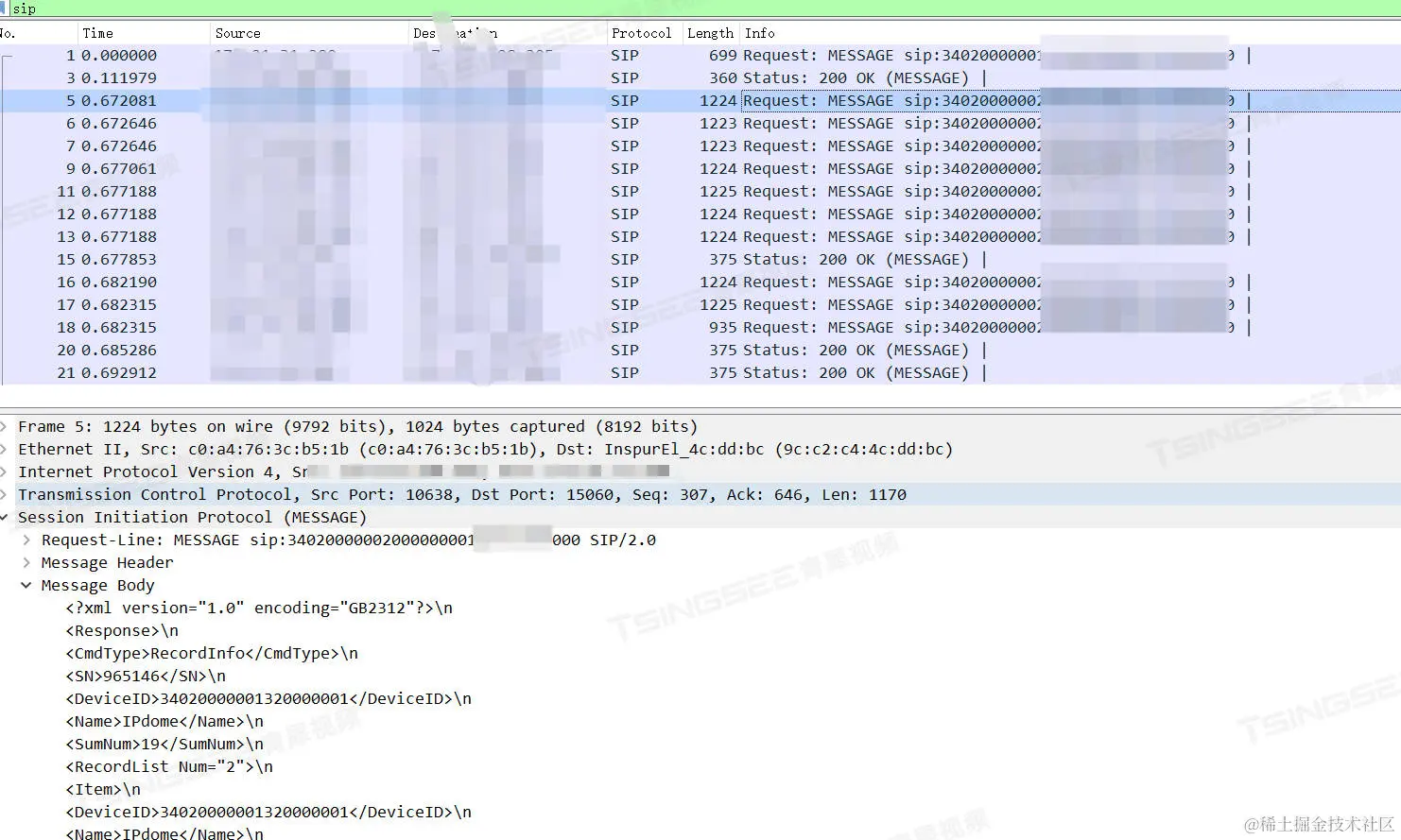 1)对现场进行查看,设备录像的确只展示几路片段。因设备是国标GB28181协议接入,于是首先抓包分析情况。