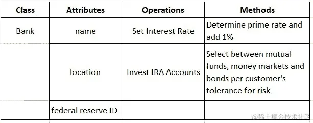 对象也有组成部分。类的特征被称为属性。类的行为被称为操作。行为或操作的具体实现被称为其方法。换句话说,方法是操作的实现方式,或者定义函数的代码体,而操作是函数的原型或使用协议。