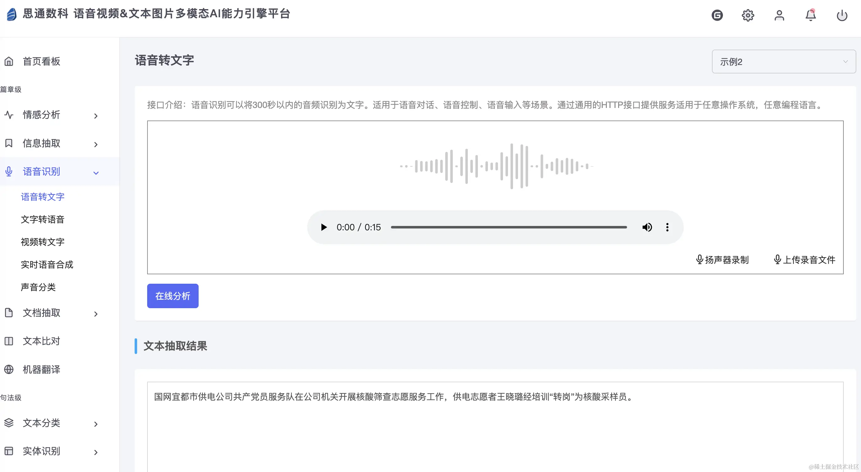 同时向大家推荐一个AI开源项目:自然语言处理、情感分析、实体识别、信息抽取、图像识别、OCR识别、语音识别接口。