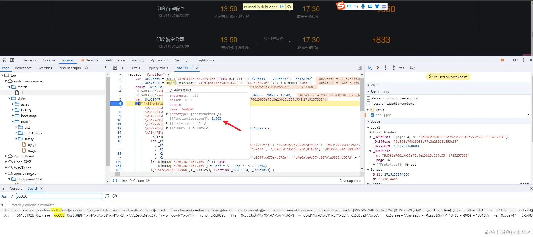 我们可以看到m字符串是通过oo0O0()函数 + window.f + ‘|’ + 时间处理构成的,接下来我们来找oo0O0()这个函数。