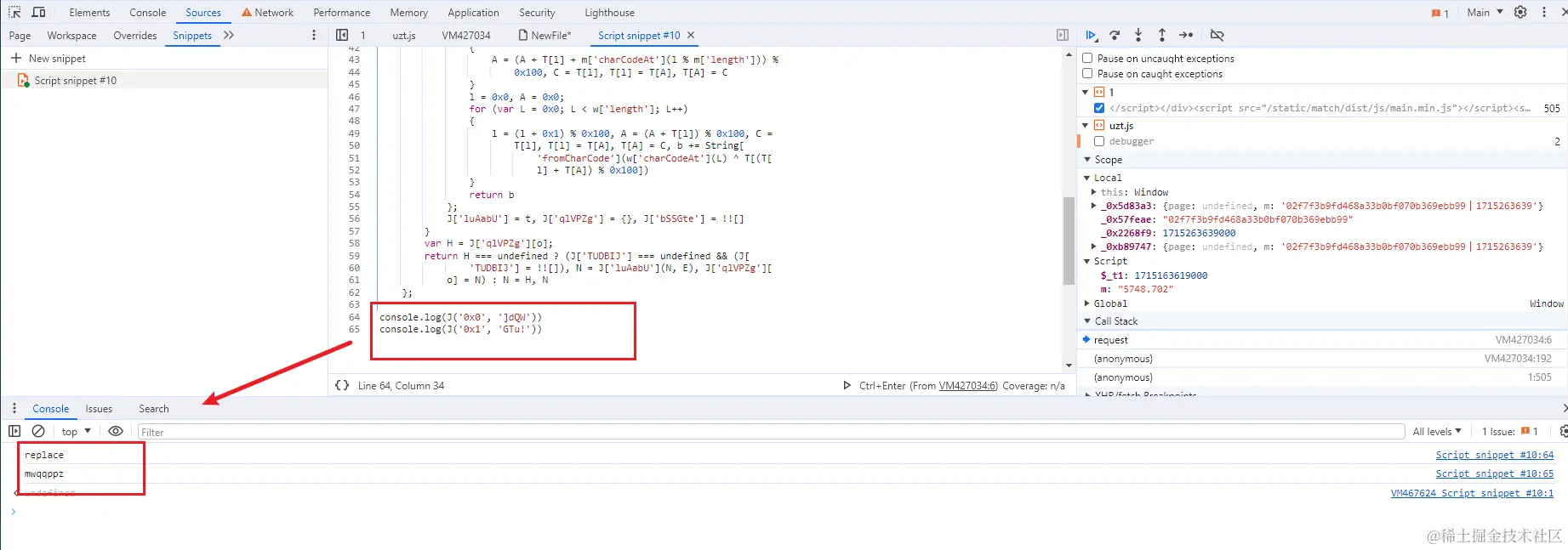 通过解混淆后的 JS 代码也是进一步验证了我们跟踪堆栈的正确性。