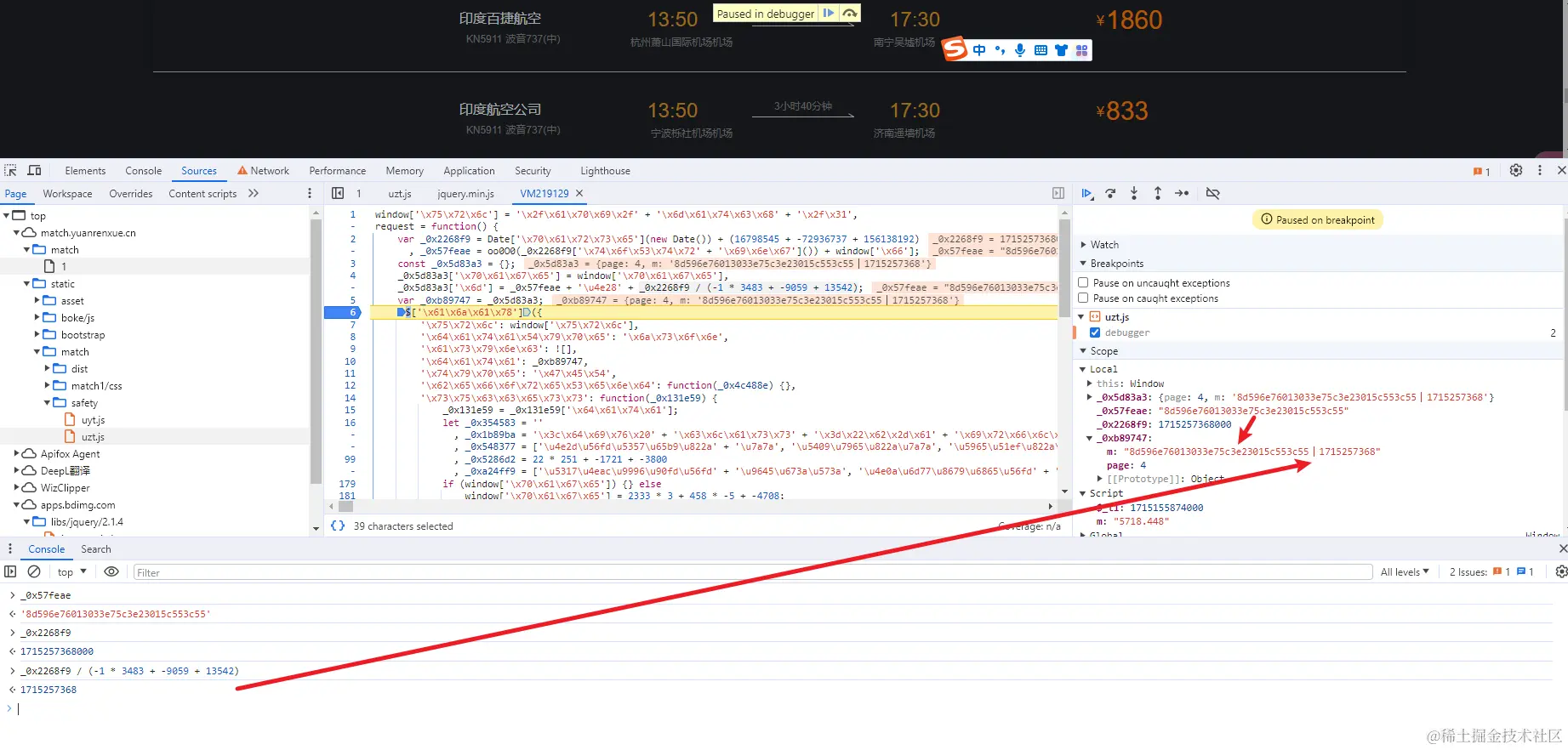 根据_0xb89747为{"page": 4, "m": "8d596e76013033e75c3e23015c553c55丨1715257368"}能够得出参数里面m的组成: