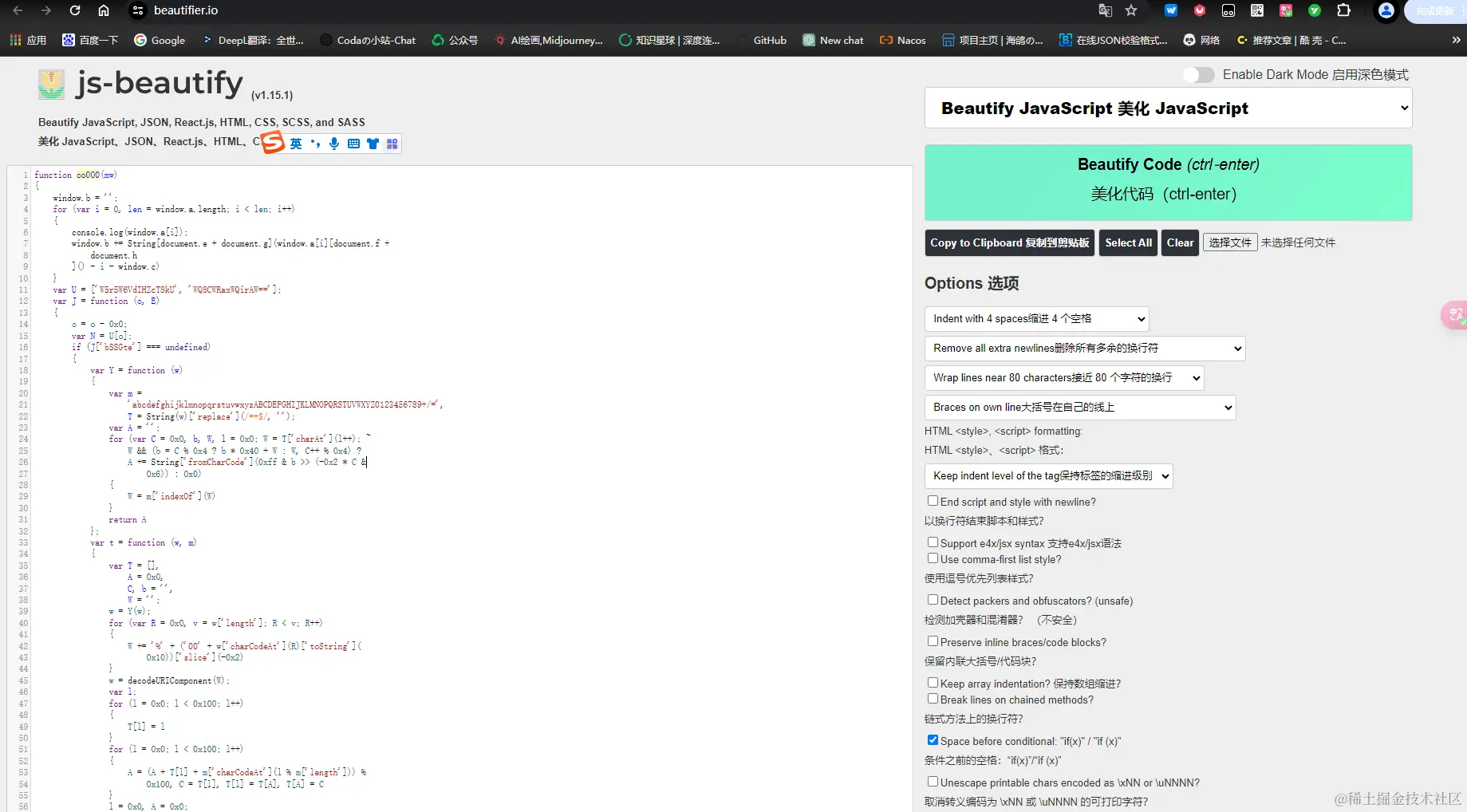 HTML 美化代码工具分析: beautifier.io/