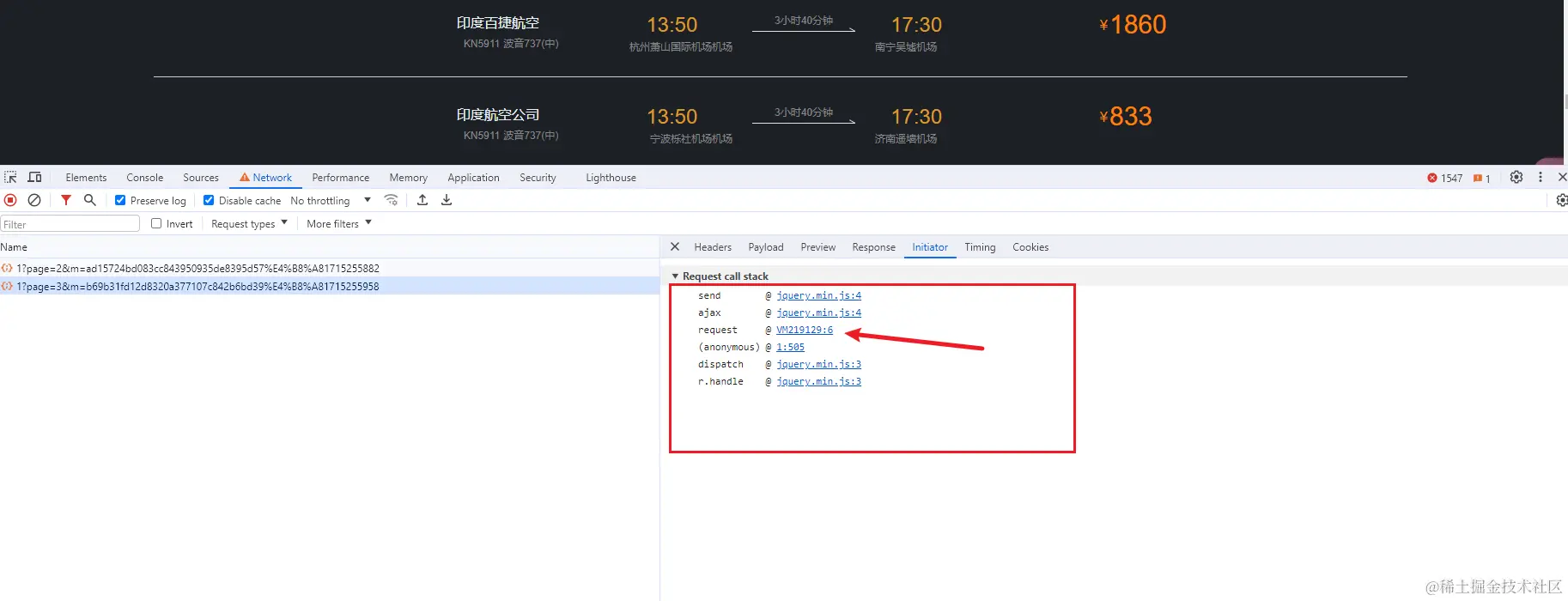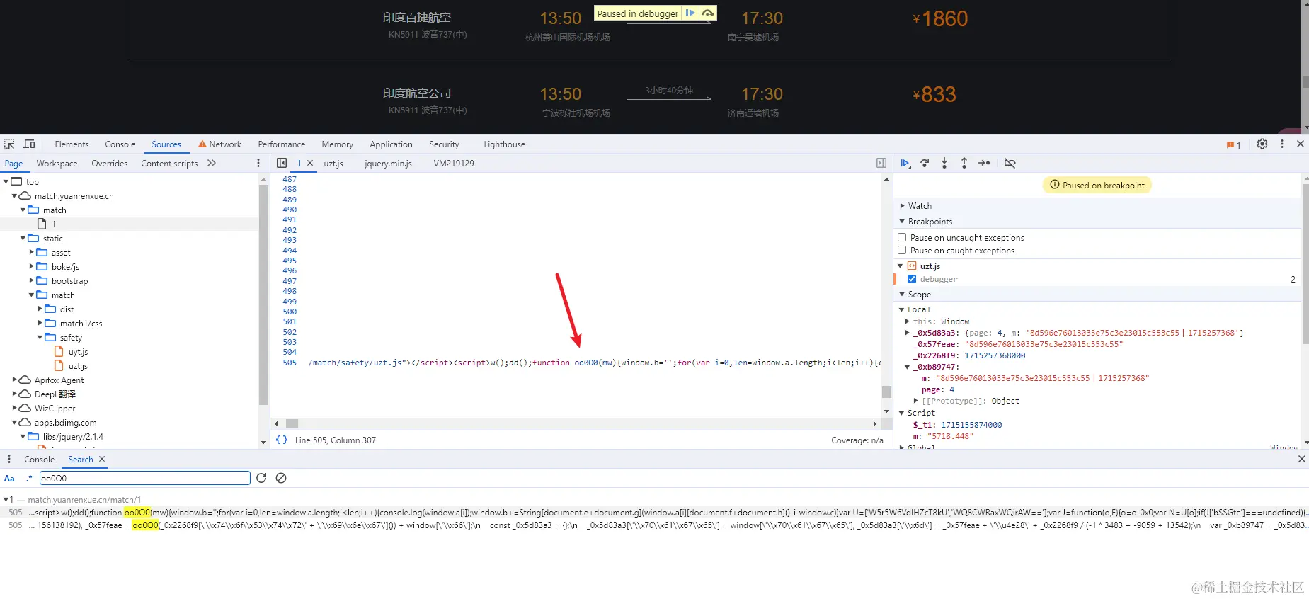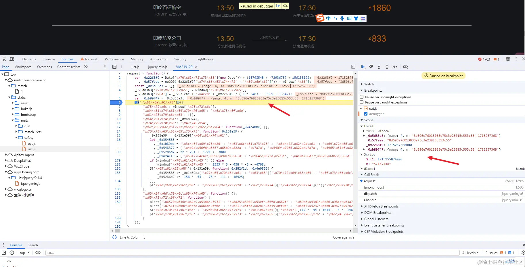 在点进去显示的那一行打断点刷新调试一下,会发现在_0xb89747已经是加密完成的参数,肯定加密过程是在这之前完成的。