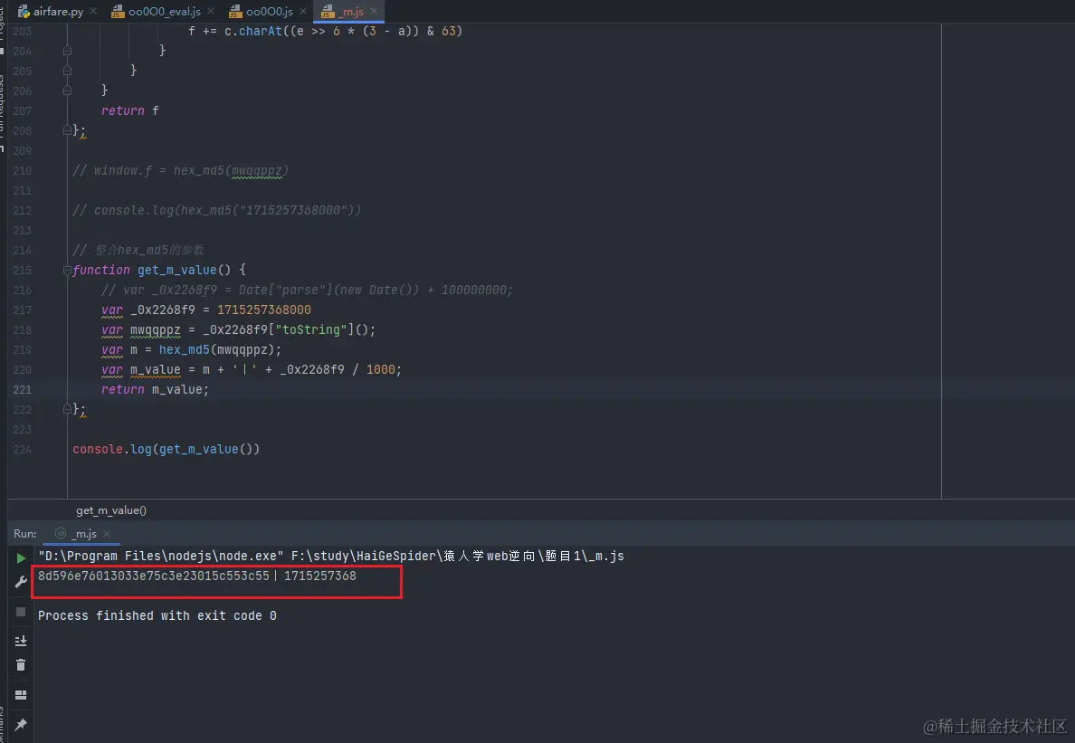 和浏览器分析时的m值一致,JS逆向过程结束。